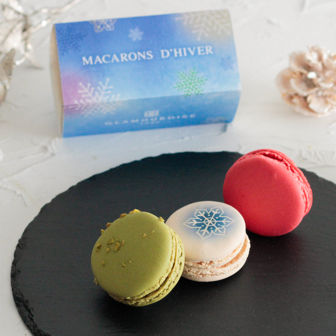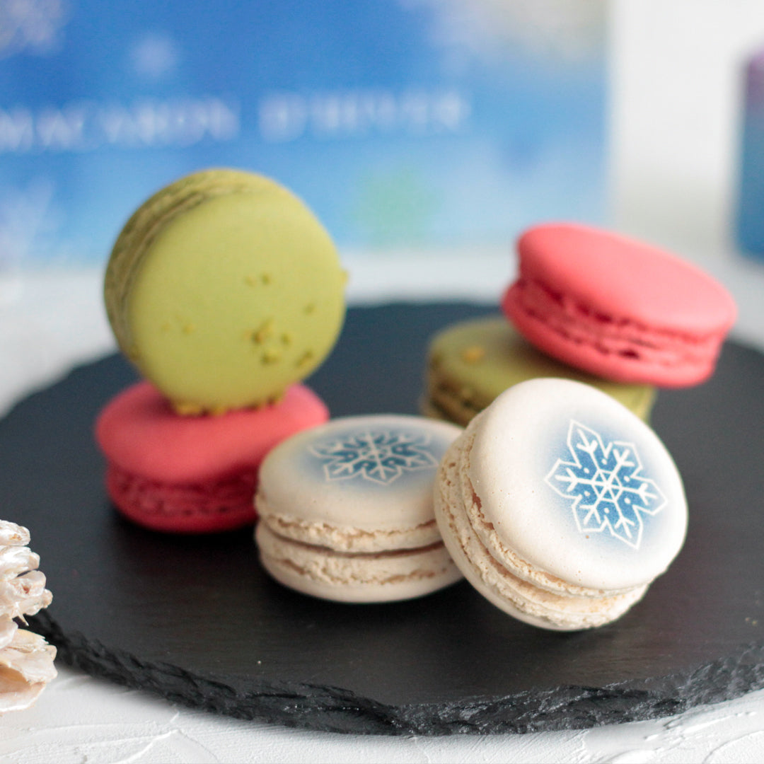 雪の結晶をデザインに取り入れ、冬のイメージをプラス。冬限定のマカロンギフトに。