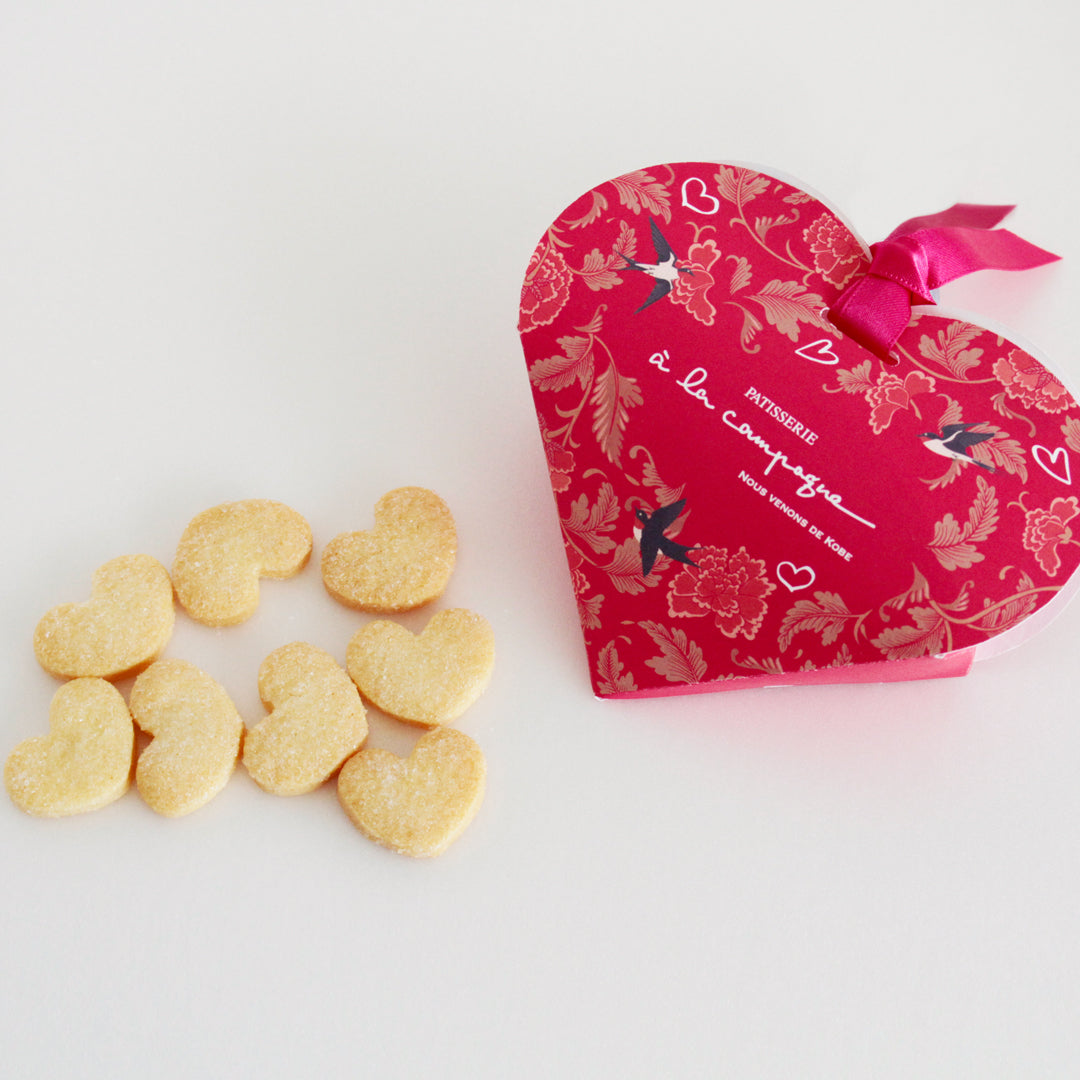 ⼩さな可愛いハートのクッキー⽣地にグラニュー糖をまぶして焼き上げました。