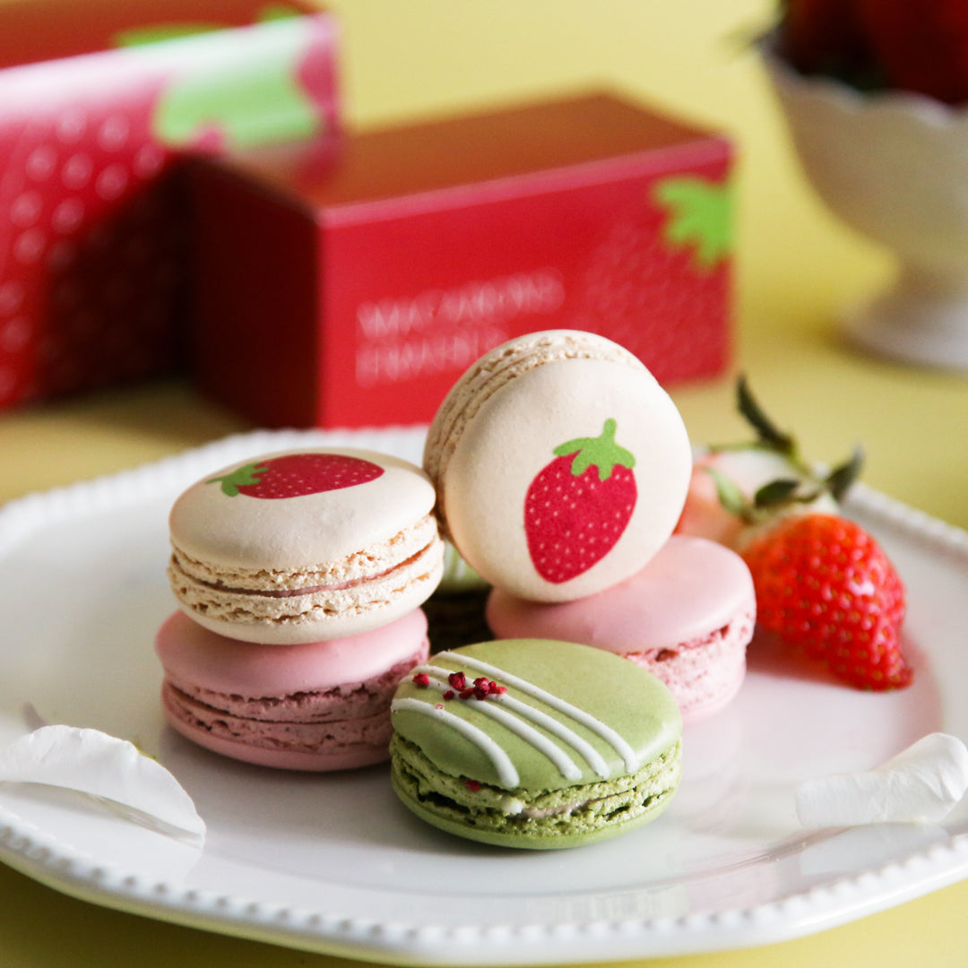 いちごのおいしい季節のマカロンは愛らしくて華やか。
