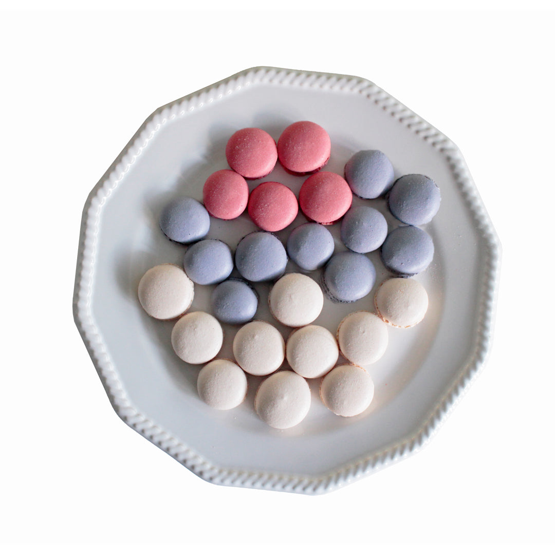マカロン生地を小さく絞り、サクサク食感に焼き上げました。