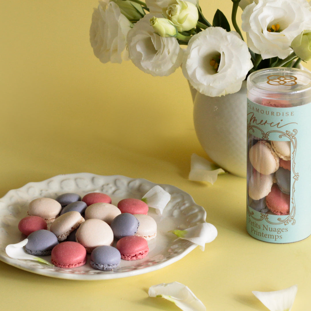 春の空を思わせる色とりどりの小さなコロコロとしたマカロンクッキー。