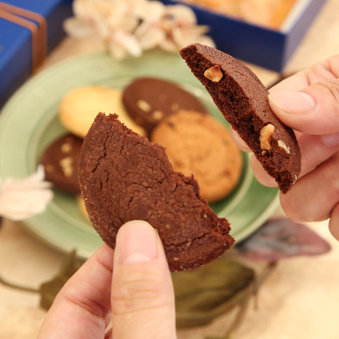 チョコレート生地のサブレに、ヘーゼルナッツを散りばめてサクサクとした食感に仕上げました。高級スペイン産チョコレートを使用する事で、濃厚な味わいが際立ちます。※ノワゼットとは、フランス語で「ヘーゼルナッツ」の意味です。